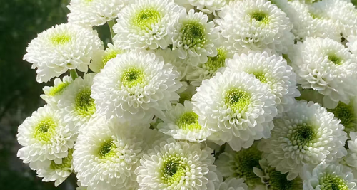 外观特征:科隆香水小菊的花瓣为白色,花心呈浅绿色,颜色清新淡雅,给人一种清新自然的感觉。其花型呈半球形,花苞精致小巧,像一个个拇指大小的小雨伞,花朵直径通常在 2-3 厘米左右。