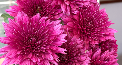 外观特征:花色为浓郁的深紫色,带有一些紫红色调,色彩明亮,没有一般紫色的沉闷感。花心部分为深粉色,与紫色花瓣形成鲜明对比。其花头整体偏大,属于大花型小菊品种,花瓣层数多,花心紧凑,外瓣向外伸展,花型大方整齐,既潇洒又不失柔美。