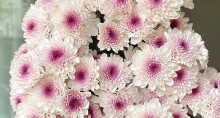 外观特征:马蒂斯小菊的花朵小巧玲珑,花头呈球状,花瓣较为密集。其花心为紫色或淡粉色,花瓣边缘为白色,颜色从花心向边缘逐渐过渡,形成独特的色彩层次感。