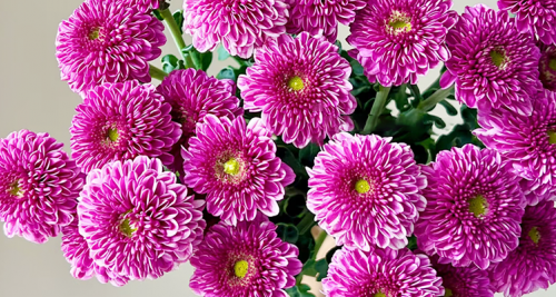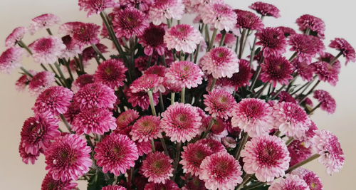 养护方法:收到花后,需将叶子撸干净并斜剪去根,深水醒花至花瓣吸饱水分,然后剪至合适高度插入中低水位的花瓶中。水浑浊时要换水剪根洗根,水不浑浊则可直接加水补充水量。若想让小菊开炸,可加 3 倍营养液,不换水,适当晒点太阳。