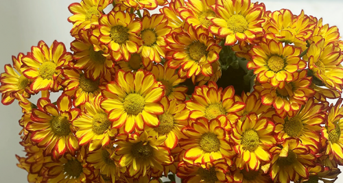 花色:花瓣主体为明黄色,边缘镶着明艳的红边,色彩对比强烈,极具视觉冲击力,像被阳光吻过的裙摆描了红妆,搭配嫩绿色的花心,可爱又明媚。