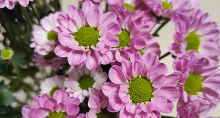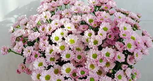 观赏搭配:罗西粉小菊适合用于制作花束或插瓶观赏。它可以单独成束,展现其清新甜美的特质,也可与其他颜色的花卉搭配,如与白色、绿色的花卉组合,营造出自然、清新的氛围。